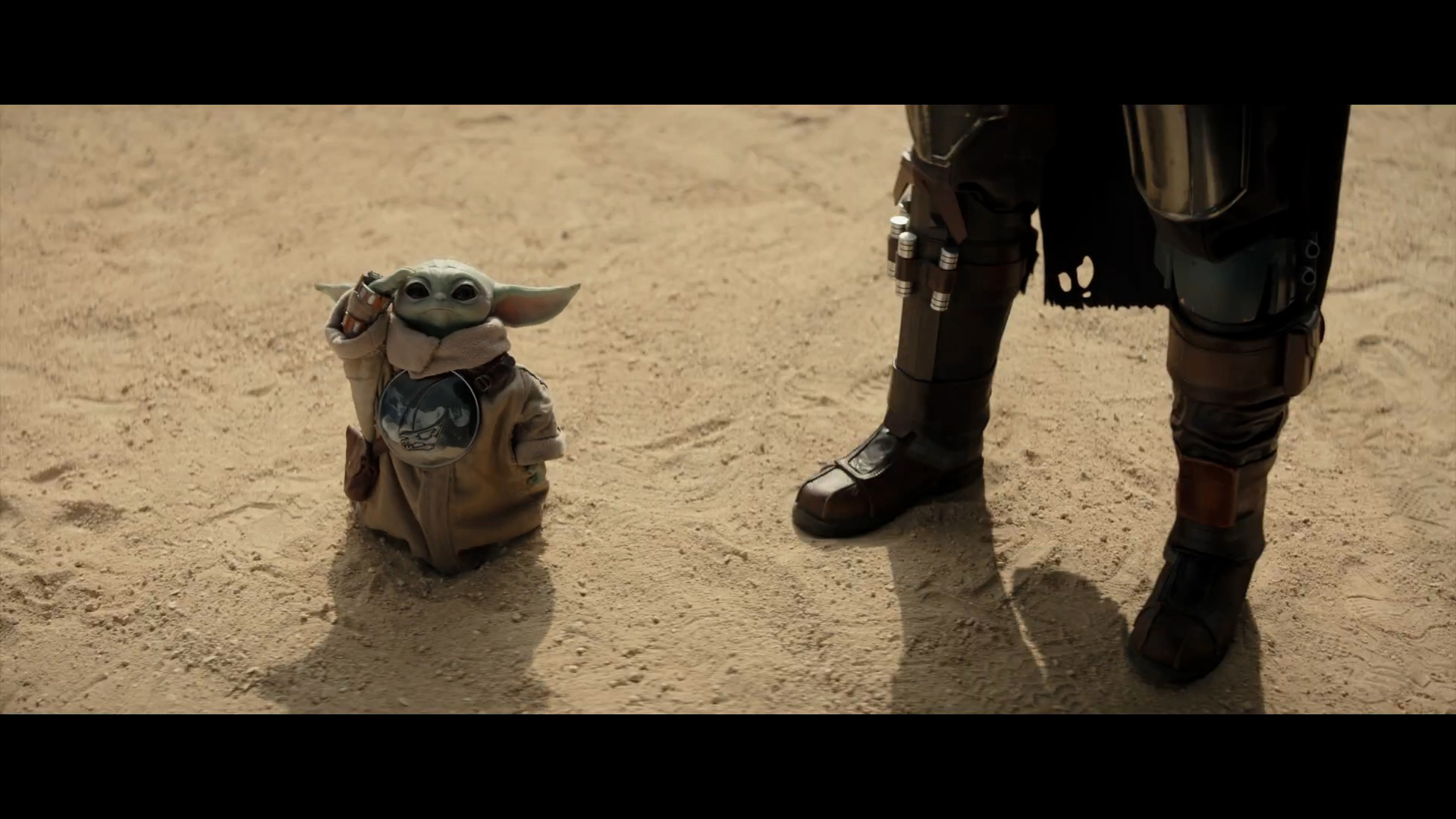 - Shot #54 - The continuation of a shot we saw in the previous trailer, with Grogu swimming for his life. But this time, Mando's hand comes into the frame and scoops him up.