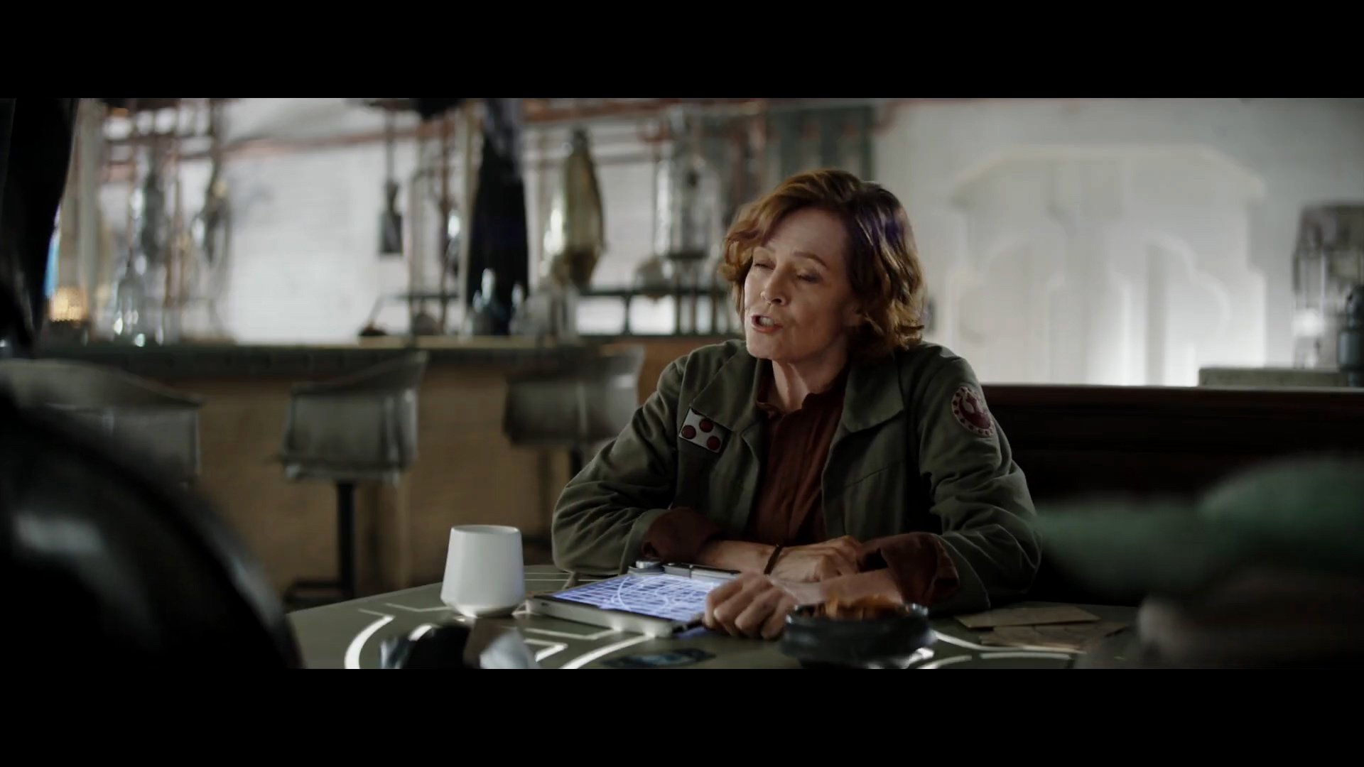 - Shot #29 - We saw this scene in the previous trailer from last fall, but not this specific dialogue. Inside Adelphi Base, Colonel Ward provides Mando and Grogu with a mission.