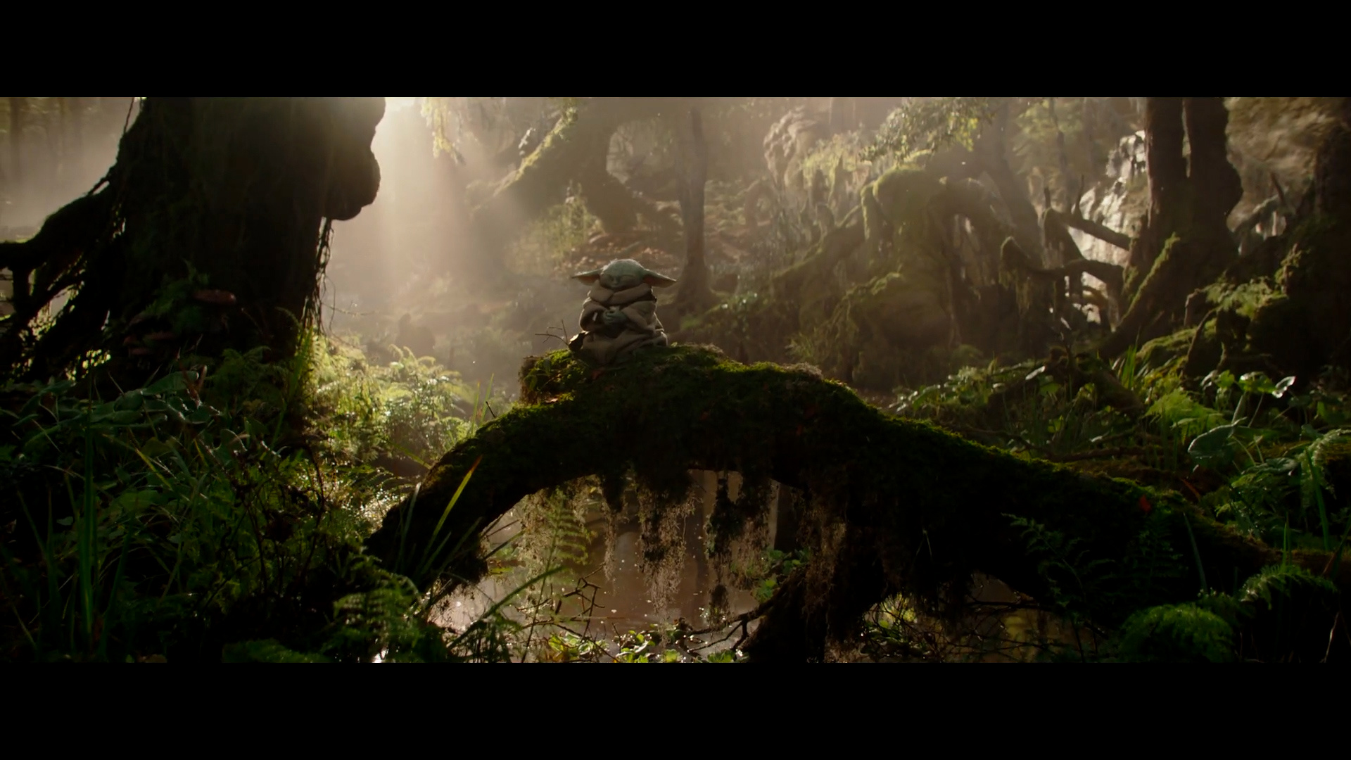 - Shot #53 - Fade in as Grogu sits on a log in the swamp and meditates. In addition to resembling Dagobah from The Empire Strikes Back and Return of the Jedi, the landscape here actually reminds me of the opening scene of The Muppet Movie.