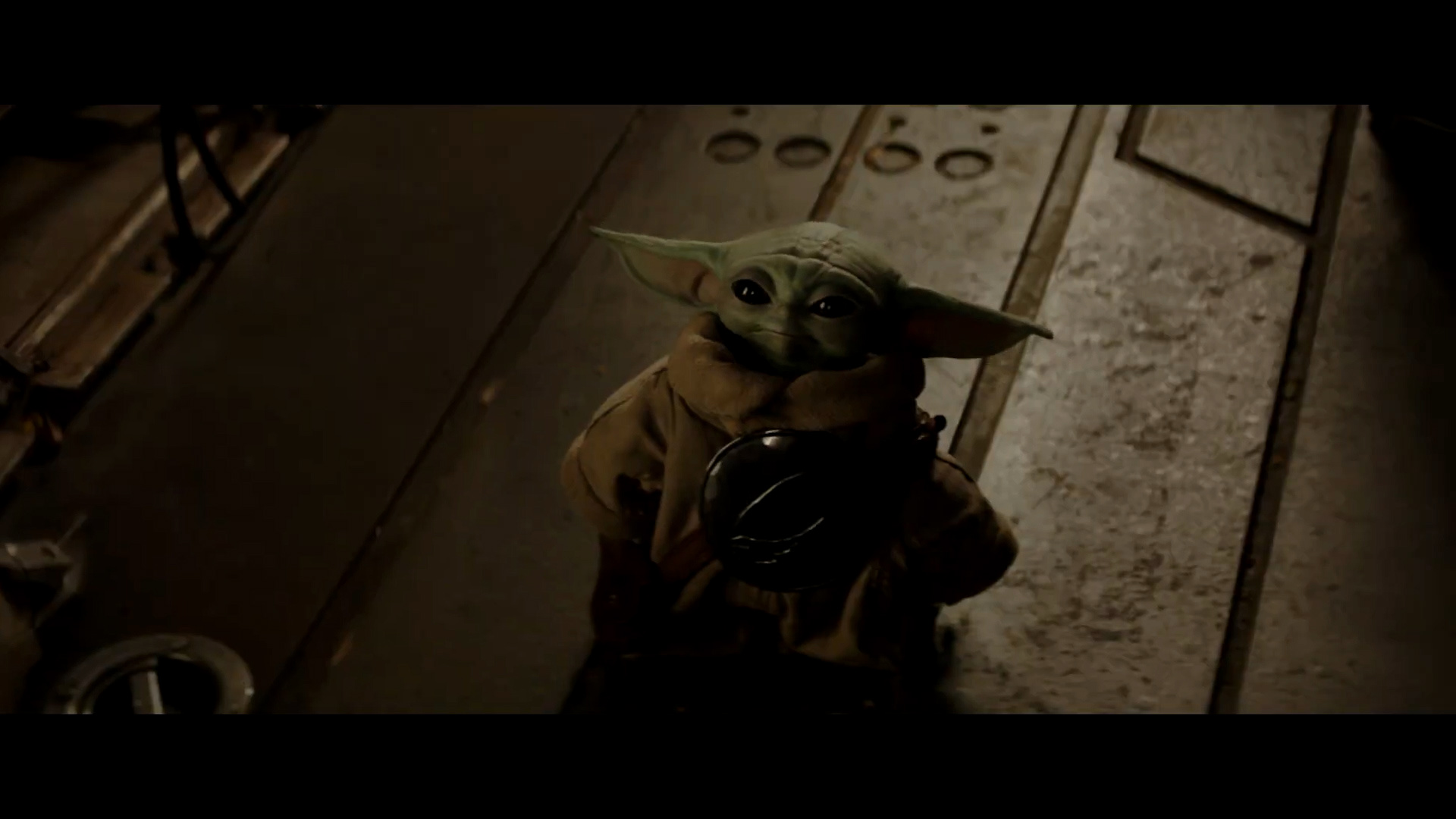 - Shot #49 - A wider shot of Grogu strapping on the rondel. It's difficult to tell where he is, exactly, but the walls kinda look like the Imperial base we saw before.