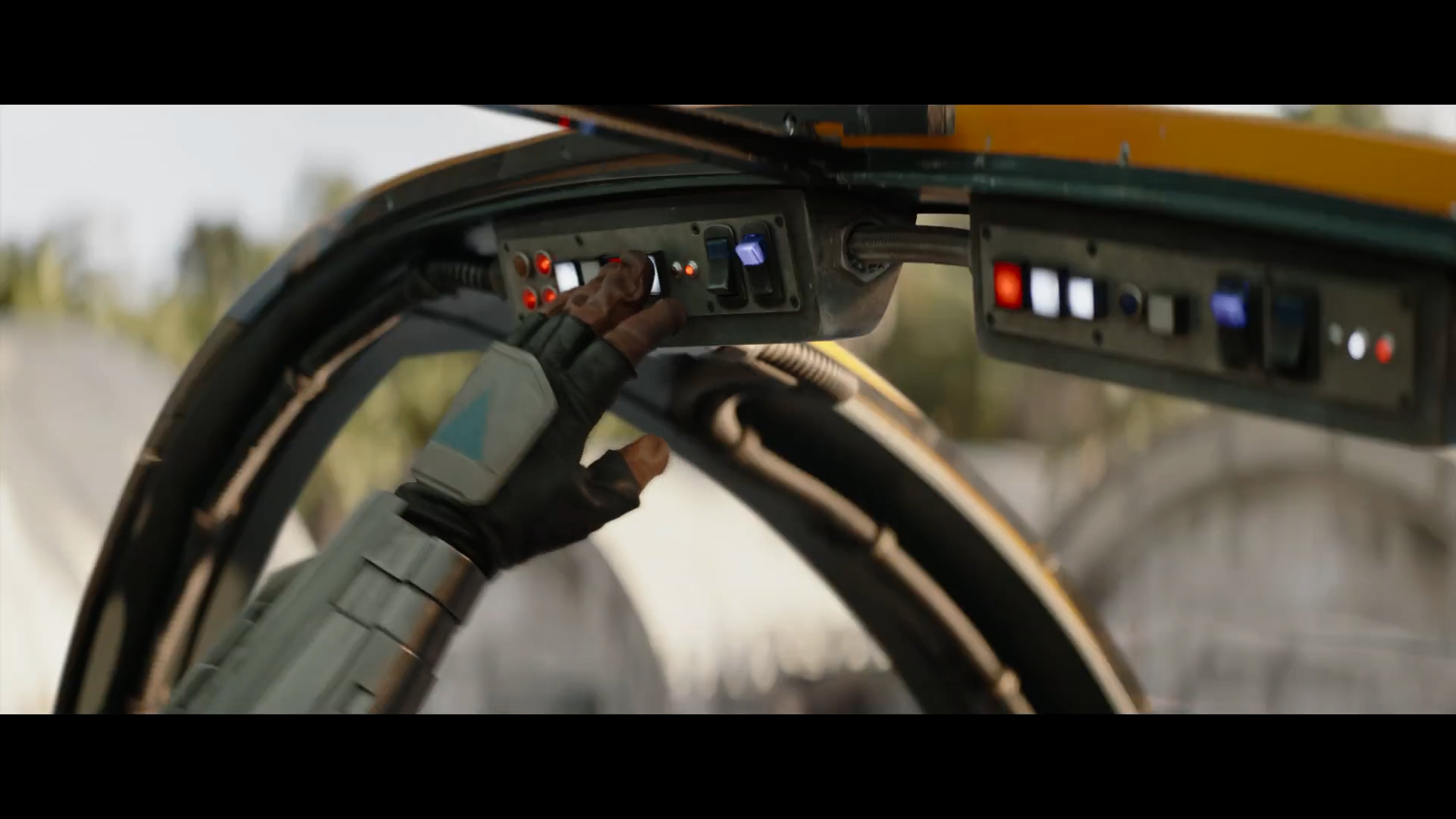- Shot #4 - Mando flips some switches on a different panel in the cockpit.
