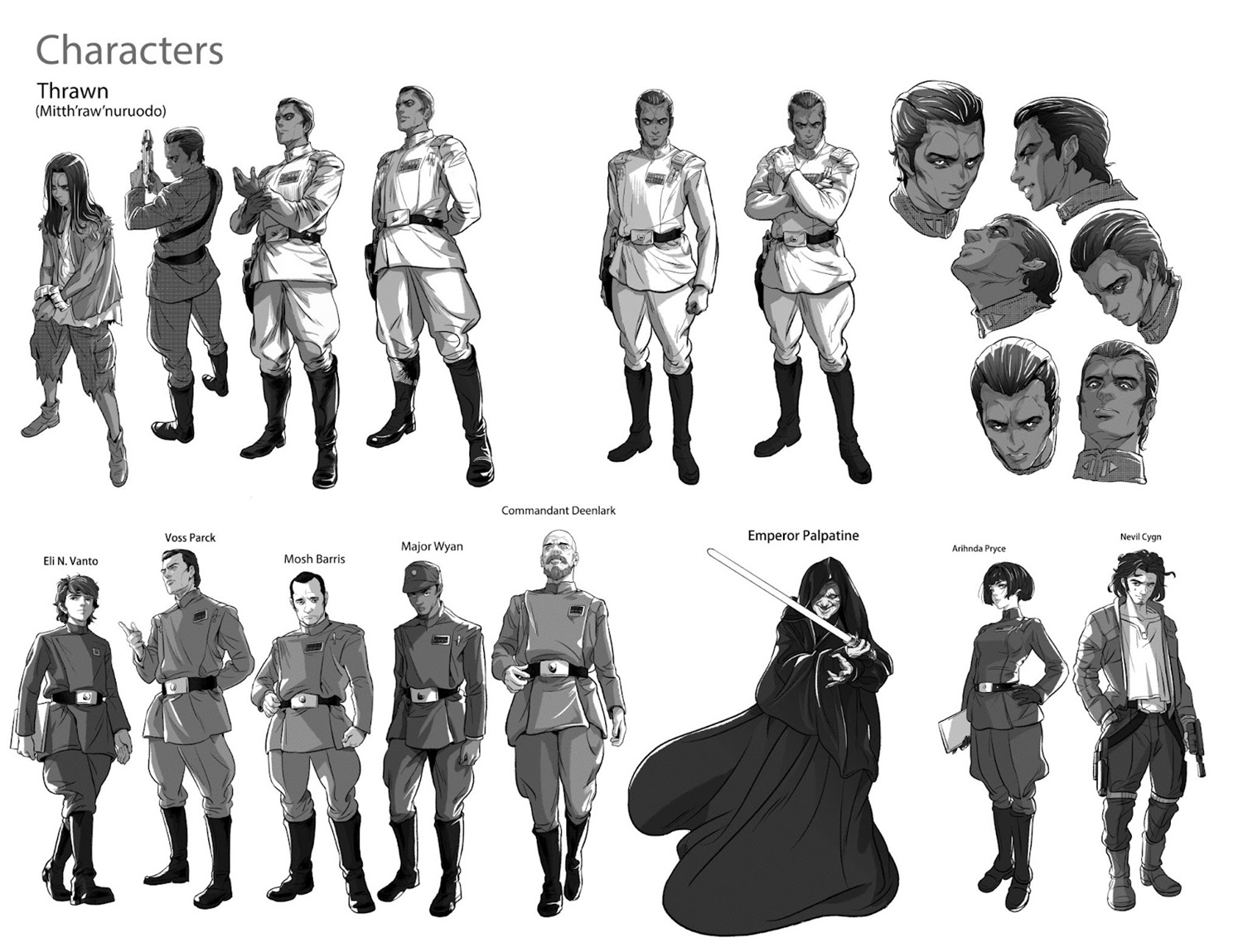 Above are character designs and process pages for Star Wars: Path of the Lightsaber, while below you can see finished sample interiors from the highly anticipated new book.