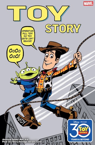 - Marvel Comics joins the 30th anniversary celebration of the landmark Pixar Animation Studios film, Toy Story with the release of three Toy Story Homage Variant Covers.