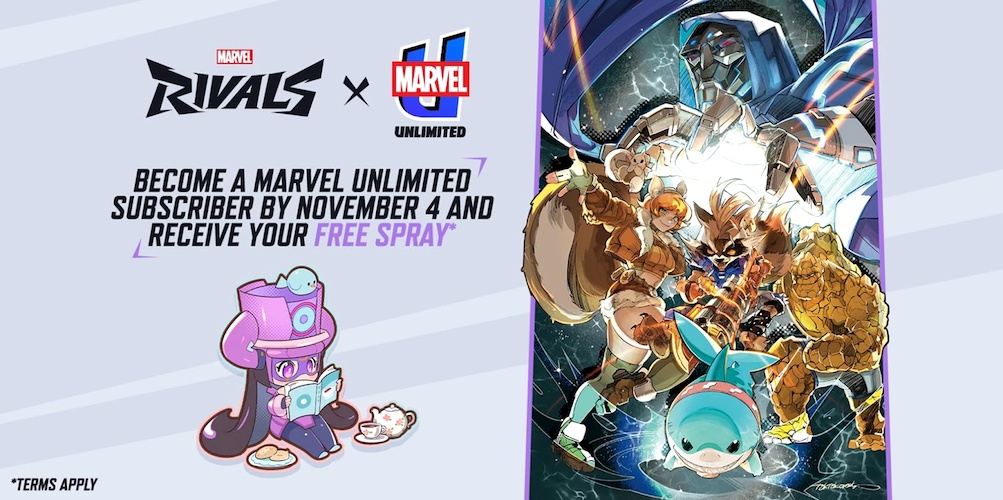 - In celebration of the launch of this new series, all Marvel Unlimited subscribers will receive a redemption code for a special Galacta Spray to use in Marvel Rivals on Tuesday, November 11th.