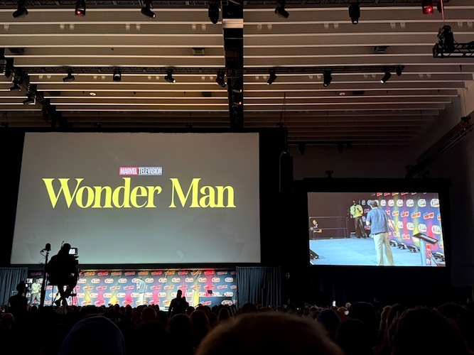 Winderbaum then shifted coasts to Los Angeles to introduce Yahya Abdul-Mateen II and Sir Ben Kingsley, stars of Wonder Man. Abdul-Mateen described wanting “to play a dude who can eat a hamburger" after heavier dramatic roles, calling Simon Williams “a dreamer walking a fine line between ego and vulnerability." Kingsley delighted the crowd, recalling his journey from Iron Man 3’s Mandarin to All Hail the King and now this show, joking that “Trevor’s battery answered the phone" when Destin Daniel Cretton called (he answered the offer in character).
