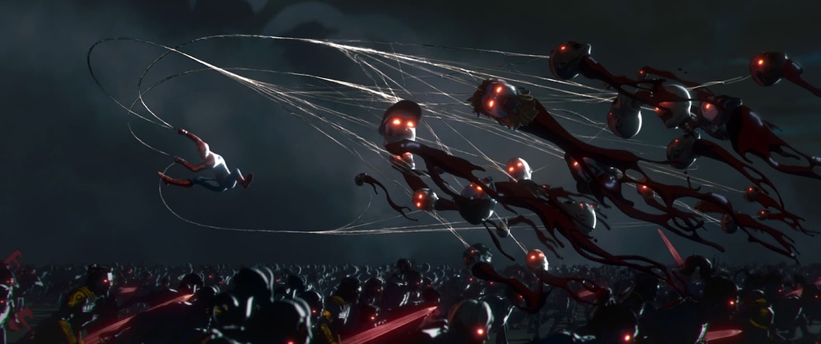 Kamala wakes up to find Spider-Man standing over her. She jumps up, excited to see him and tells him she’s a big fan. Same old nerdy Kamala. She is then caught off guard by Scott Lang’s floating head before the whole group is greeted by Rintrah and the other remaining sorcerers, whom we now know as Sara and London Master.Elsewhere, Wanda amasses her army and looks out at the surge of Infinity energy from the Wakanda event.
