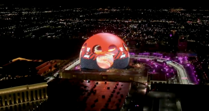 - Additionally, the Sphere also lit up with motifs of Mickey Mouse, lighting up the Vegas sky with some extra Disney magic.