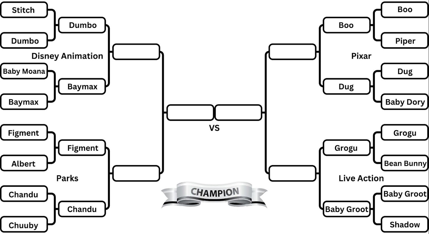 Before we get into our next matchup, let’s take a look at the last result. Our final opening round matchup was our most one-sided yet. Baby Groot proved to be a serious contender in this tournament, taking nearly 83% of the vote against Shadow. The Homeward Bound star simply didn’t have the name recognition to compete against a character as adorable and recognizable as Baby Groot.