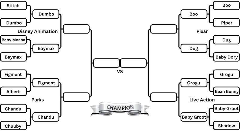 We have reached the Elite 8 of our 11th annual Mouse Madness tournament! This year, we are attempting to crown the cutest Disney character. The competition has been fierce and we have seen some close matchups and some shocking upsets. Now, with just seven matchups left to go, we are getting close to learning who is the cutest Disney character ever!