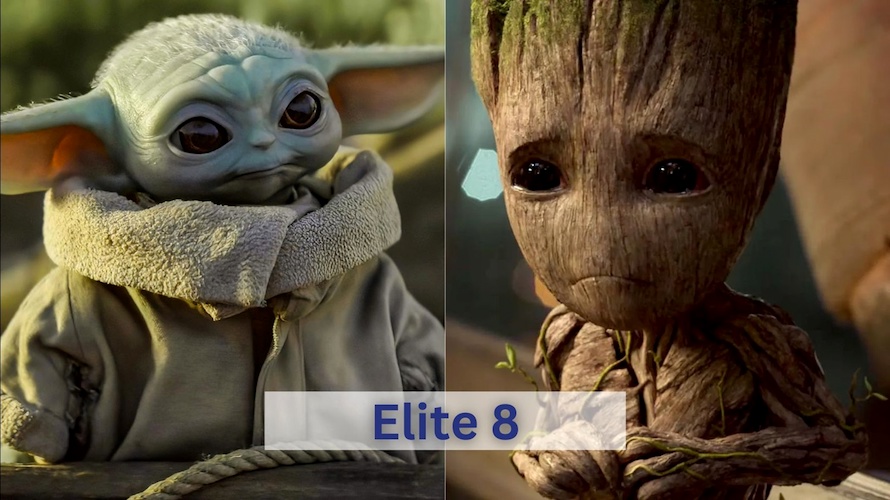 For our final matchup of the second round, we have a contest that very well could have been the finals of this whole tournament. The Live Action region pits Grogu against Baby Groot. The worlds of Star Wars and Marvel collide in what should be a very close matchup here, with these two adorable galaxy travelers vying for a spot in the Final 4. The winner of this matchup could very well be the favorite to win it all.