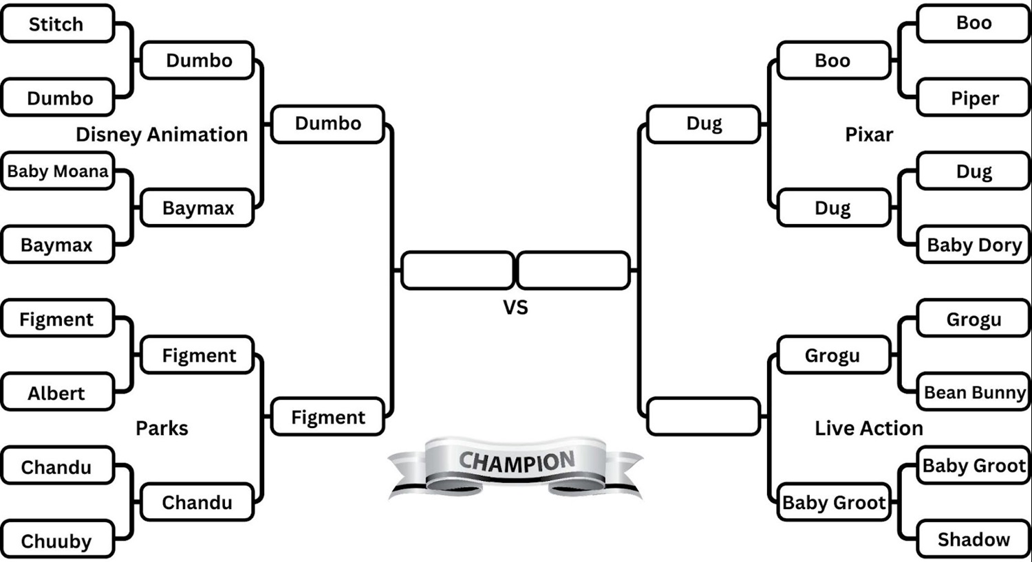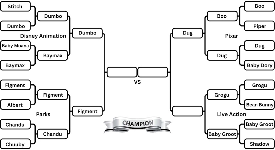 Before we get into our next matchup, let’s take a look at the last result. Figment had that one little spark again as he took 64% of the vote to get past Chandu in the Parks region. The top seed prevailed to claim the third spot in the Final 4 and will now move on to face Dumbo for a spot in the championship!