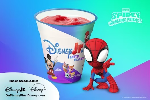 - Disney Jr. Strawberry Smoothie - Inspired by Spidey and His Amazing Friends, this smoothie is made with real fruit and is only sweetened with dates.