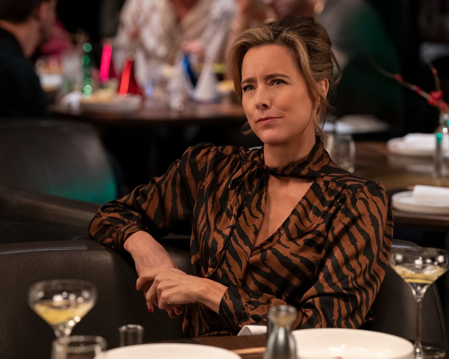 Meanwhile, Charles meets Sofia (Téa Leoni) at a Japanese hibachi restaurant, discovering that she brought her adult sons, who sit at a separate booth, celebrating Mikey’s (Cory Jeacoma) 36th birthday. Mayor Tilman (Keegan-Michael Key) barges over to offer condolences for Nicky and, once again, to pitch himself for the podcast, this time suggesting he do sound effects.