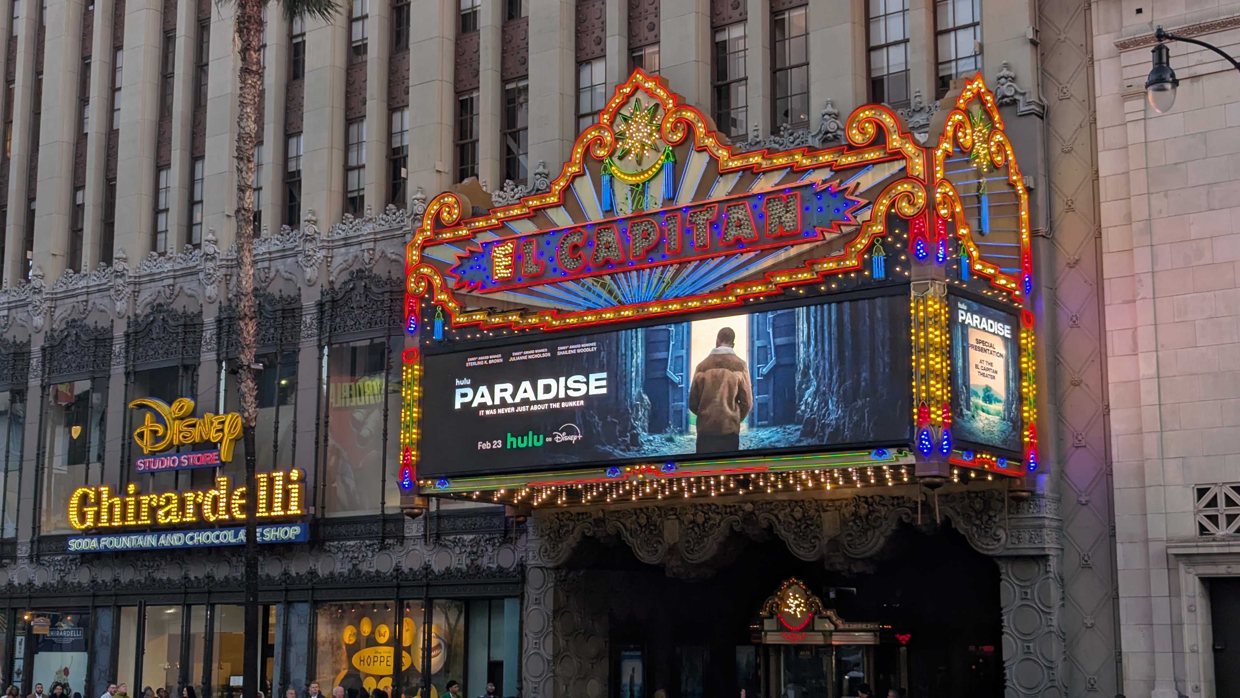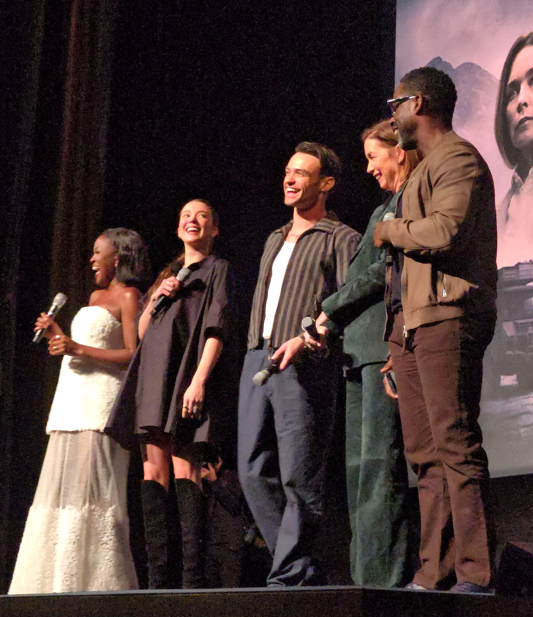 The event kicked off at 7:00 p.m. to a full house of excited fans ready for the Season 2 premiere. The El Capitan’s marquee had been updated for the occasion, giving the evening a premiere-like atmosphere (interestingly enough, what appeared to be an actual premiere for what appeared to be Season 2 of the Apple+ show Monarch was taking place across the street at the Chinese Theater at the same time).