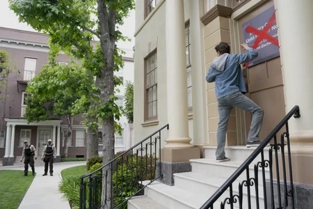 Police cars patrol the streets, and Samantha sits at home watching tv with her family. When her daughter asks why the cops are outside, she tells her not to worry. She seems to be enjoying the relaxing time at home, and when her husband asks how long the house arrest is going to last, she doesn’t care.