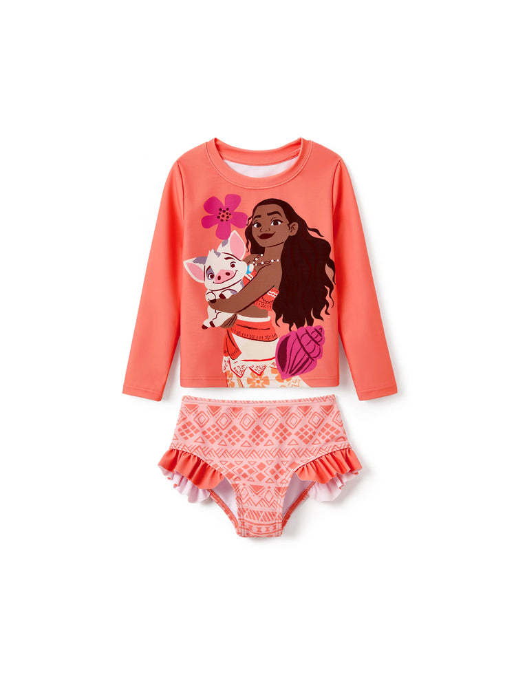 Disney Princess Girls 2pcs Moana UPF50+ Ruffled Long-sleeve Swimsuit - $26.99