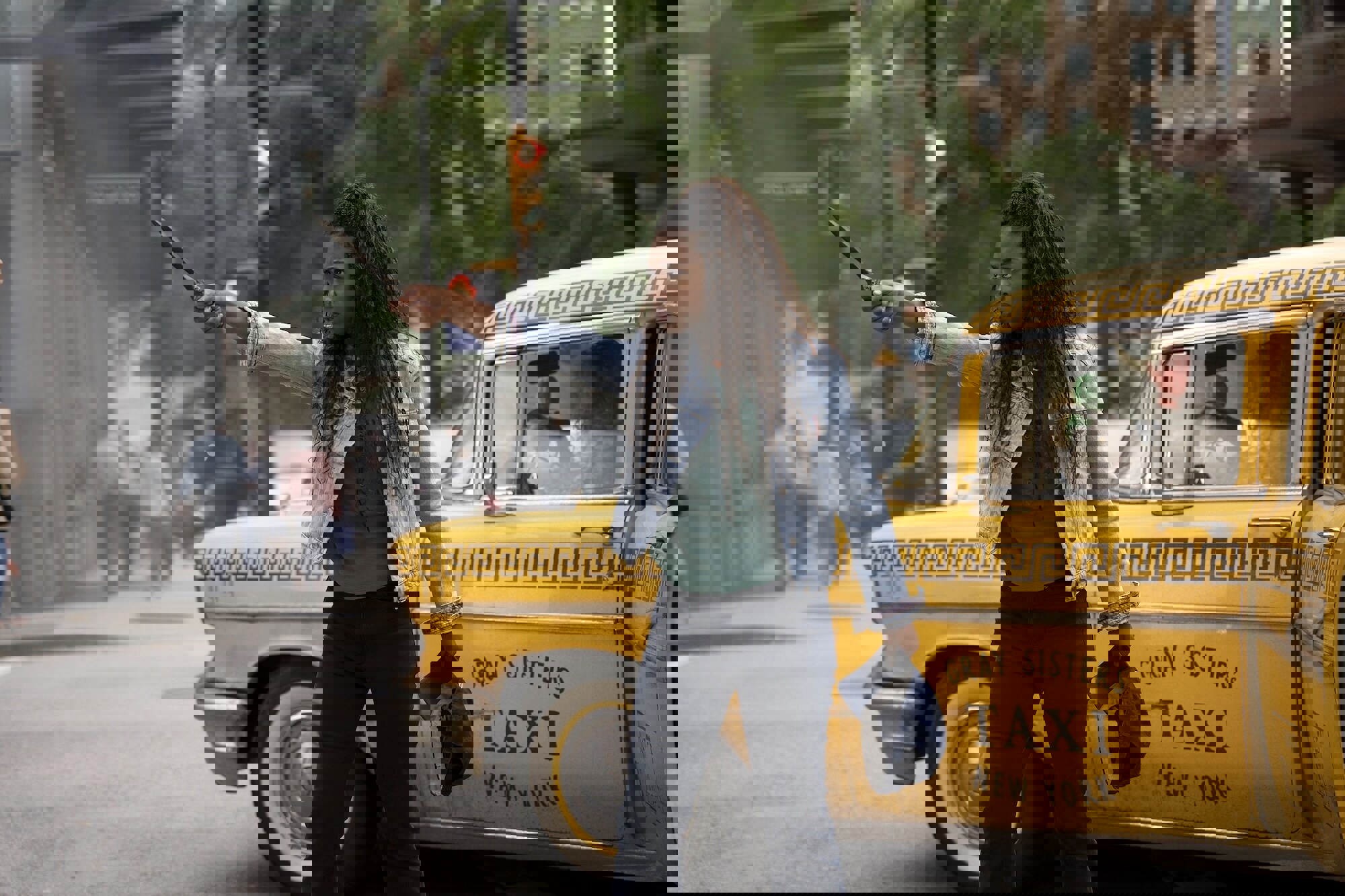 Sally reminds her son that being a real hero means standing up for others. Walking to school, Percy and Tyson are met by the Gray Sisters cab, and Annabeth (Leah Jeffries) emerges from her invisible hat wondering if Percy is in trouble. She asks if he had a dream about camp. The Gray Sisters want extra pay, and when they get their drachma, the cab takes off for Camp Half-Blood with Percy, Annabeth, and Tyson. Percy gets hold of their one eye and holds it hostage until he gets information about Grover, which results in them getting what would appear to be geographic coordinates, even though Percy doesn’t know what they mean.