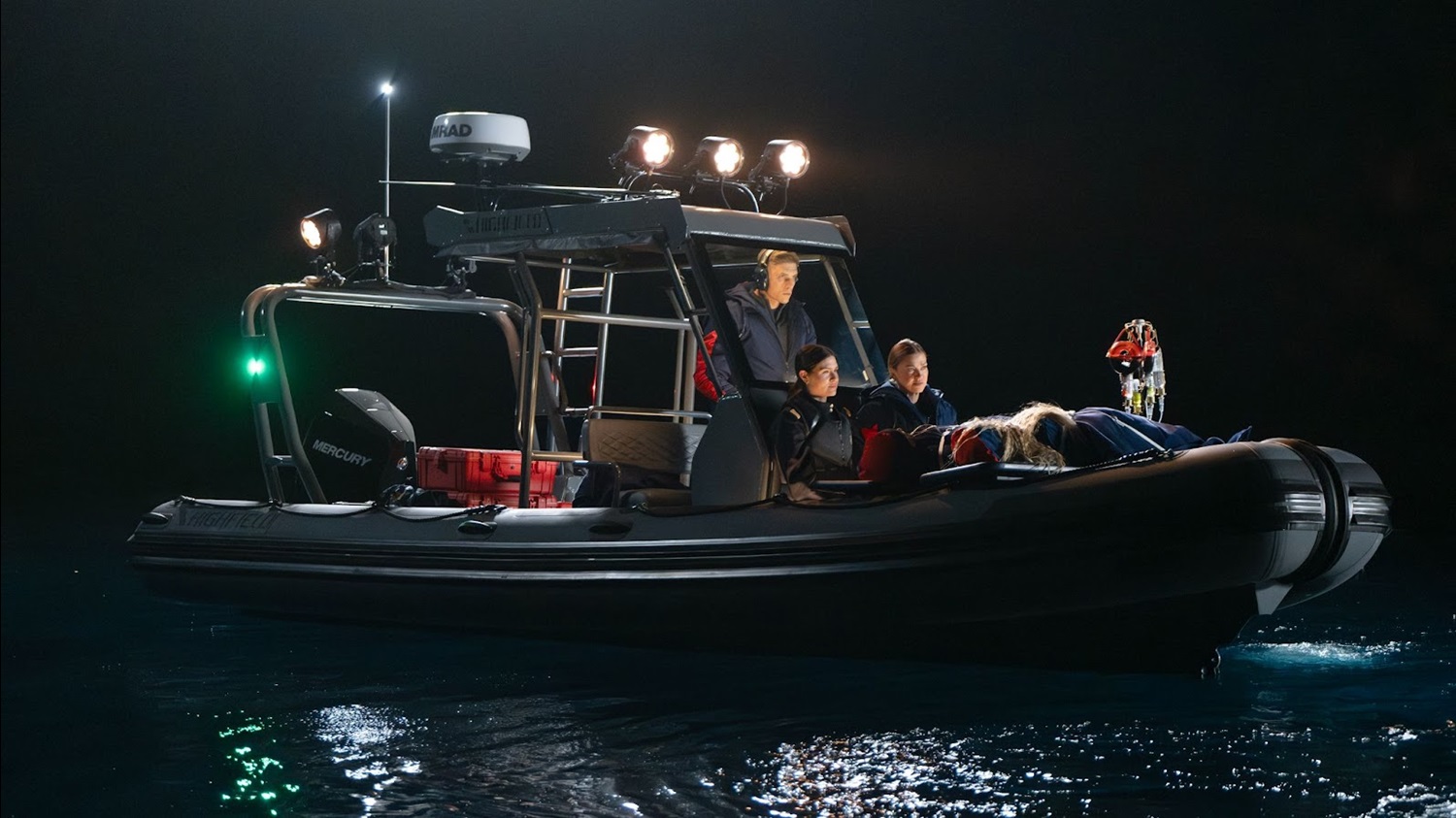 As the rescue boat hits the water filled with orcas, First Mate Jay from the Flicka suggests dumping sand into the water which will help the orcas disperse. Avery and Brooke get into a conversation about the throuple and the baby on the rescue vessel before the orcas join the party and throw everyone around. Respectfully: everyone on this show is an idiot. The orca-induced rocking adds to the patients’ pain, so they head back to The Odyssey to avoid even more pain.