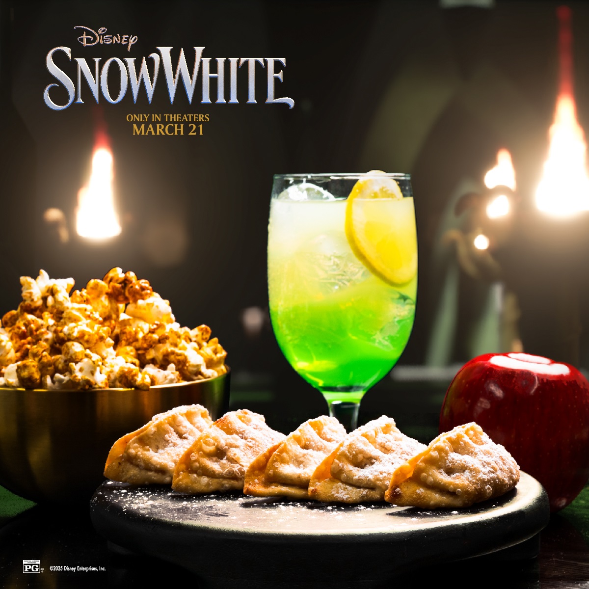 - Regal Cinemas: “A taste of magic in every bite - Indulge in the Magic Apple Dumplings, the Golden Caramel Popcorn, or the Queens Potion Apple Lemonade - Snow White coming to Regal theatres March 21."