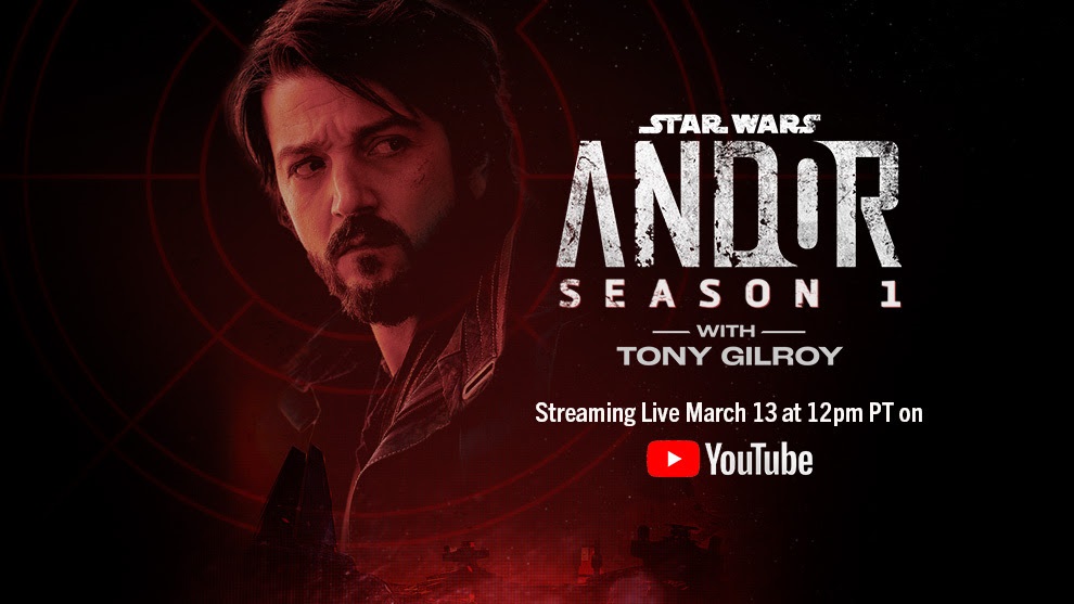 - Additionally, there will be a live stream event featuring Andor creator and showrunner Tony Gilroy on YouTube this Thursday, March 13th at 12:00 noon Pacific Time as the acclaimed filmmaker looks back at the first season and ahead to the second.