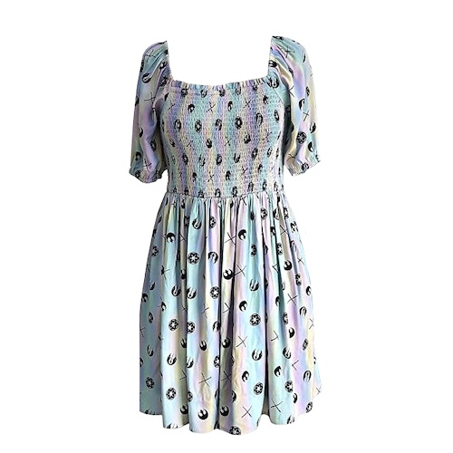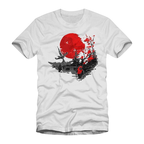 Next let’s take a look at some of the newly revealed Star Wars Celebration 2025 apparel including a Stormtrooper Samurai T-Shirt, the SWCJ Her Universe smocked puff sleeve dress, the Mandalorian Crest T-Shirt, the Darth Vader Badge T-Shirt (using the same ukiyo-e artwork I mentioned above), the black-white-and-red Death Star over Endor T-Shirt, and the similarly styled and colored X-Wing Brush T-Shirt.