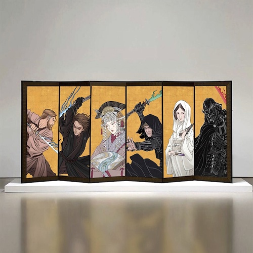 The new item that really jumped out at me is the "Byo-bu" Japanese Folding Screen (pictured above) which repurposes some of the ukiyo-e style art that was created for this year’s Star Wars Celebration attendees badges. But there’s also this great Yoda "Chochin" Japanese Lantern.