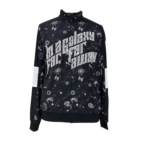 Lastly, there’s a very nice SWCJ Her Universe men’s zip windbreaker jacket with the phrase “In a galaxy far, far away" emblazoned across its front against a starfield, some TIE fighters, the Death Star, spiral galaxies, and the Imperial insignia.