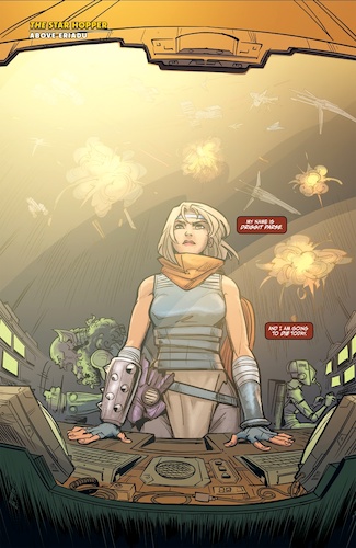 Driggit has been working undercover with the Nihil since their invasion of Valo, and here we see her finally kick the last stage of her long-con plan into action. First, she volunteers to help launch the villainous Warden’s new fleet of Eviscerator ships into the battle, while outside in the chaos of war Gavi begins to follow Driggit’s “thread" toward her location and we get a flashback detailing how the two Valo natives grew up together, often swapping clothes and being confused for twins. Then Driggit reveals her double-cross to the Warden and fights her way out of the Nihil leader’s stronghold, running face-to-face into Gavi during her egress. But there’s not much time for them to reconnect before her explosions go off, and even after that Driggit is hesitant to let Gavi forgive her for joining the Nihil, even if it was ultimately for the sake of subterfuge.