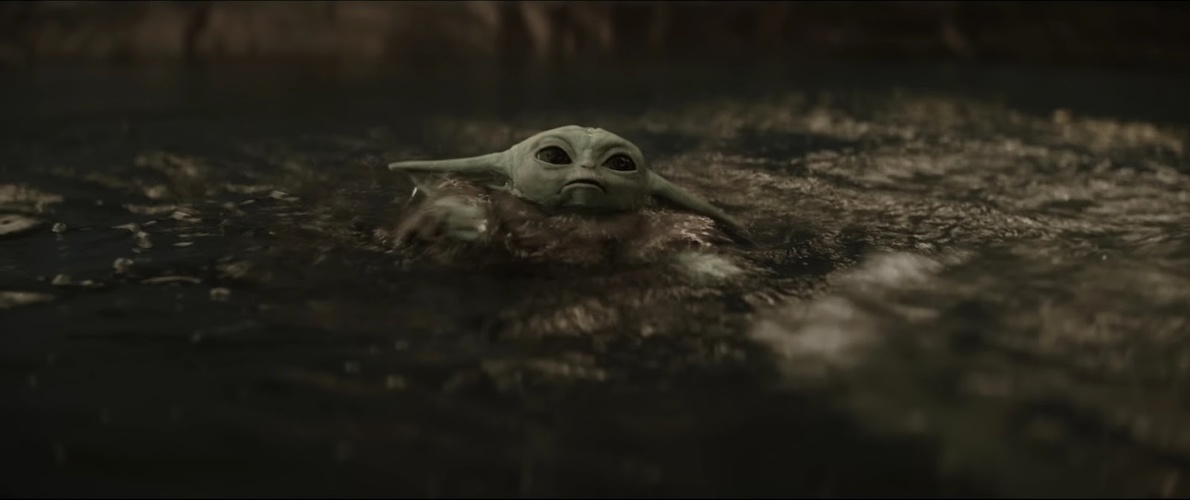 Shot 4: An Anzellan (maybe Babu Frik from Star Wars: Episode IX - The Rise of Skywalker, maybe one of the other unnamed Anzellans from The Mandalorian) leads Grogu through a sewer. The location is unidentified.