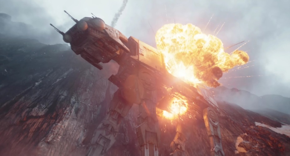 Shot 37: The AT-AT’s legs begin to buckle as it tumbles off the side of the cliff. Another walker is seen marching ahead of it up the mountainside.