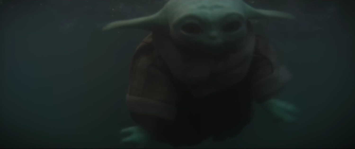 Shot 40: Grogu blasts or zaps the creature with some kind of green goo? It’s hard to make out, but there are actually two Anzellans in this shot, which leads me to believe it’s part of the same mission Grogu is on when he’s riding with the Anzellans above.