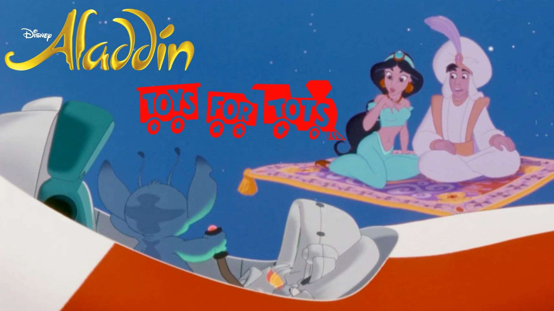 - After the final curtain call of the Aladdin on Broadway show, Stitch popped up in one of the balcony boxes before joining Genie on stage for a special holiday call to action, encouraging the audience to donate a toy to Toys for Tots for children and families who need it most, all while delighting fans and spreading seasonal cheer.