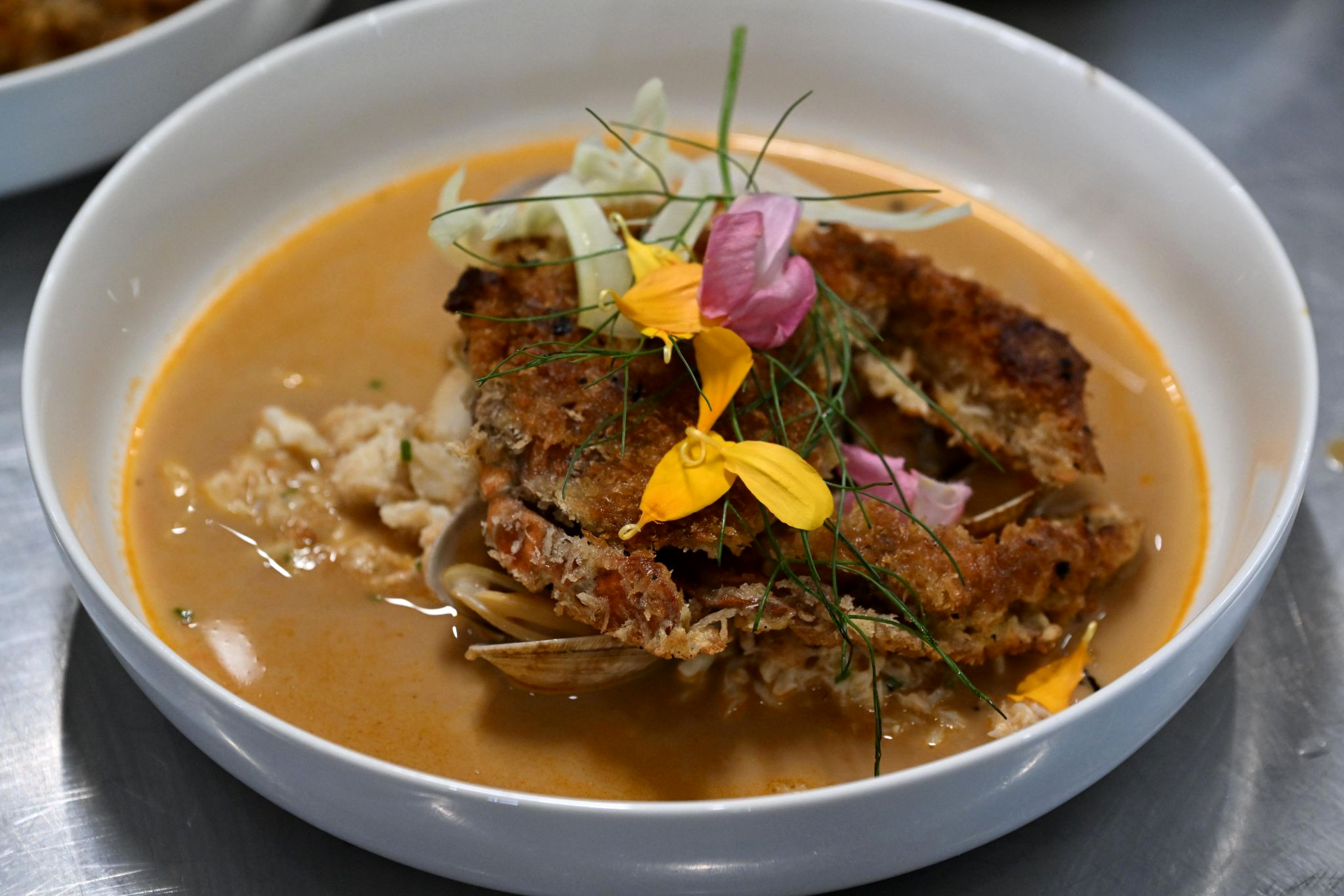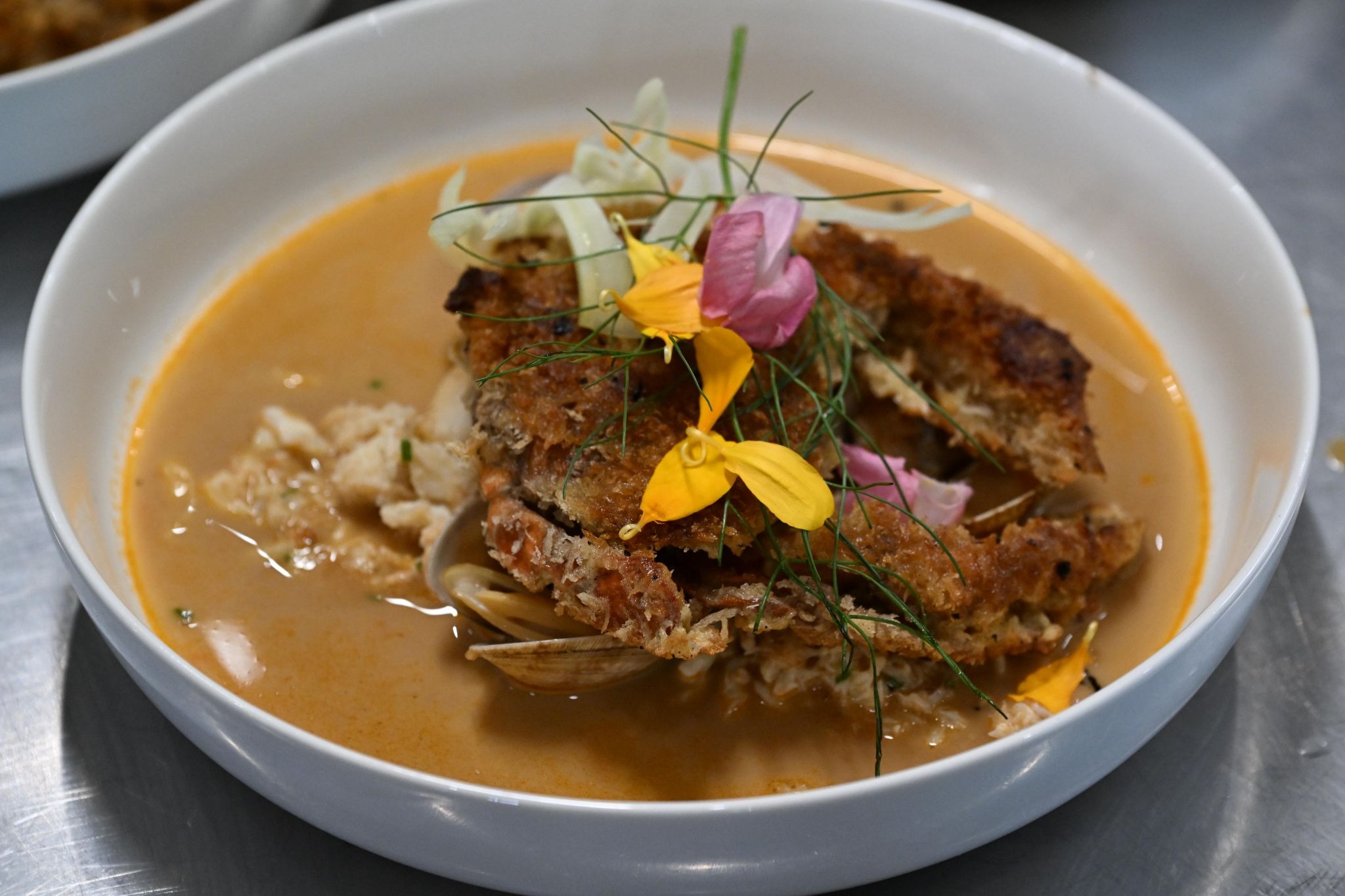 Of course, in celebration of the film, we were invited on a seafood journey that attendees had a hand in creating. As someone with an avid aversion to cooking, I was genuinely excited to jump out of my comfort zone. Thanks to Gourmandise School’s expert staff, we were guided through the process of creating a seafood stew known as bouillabaisse. Utilizing lobster, onions, garlic, saffron, and a multitude of other ingredients, we were able to help make the broth for the delicious fried soft crab entree during a special luncheon in honor of the film.