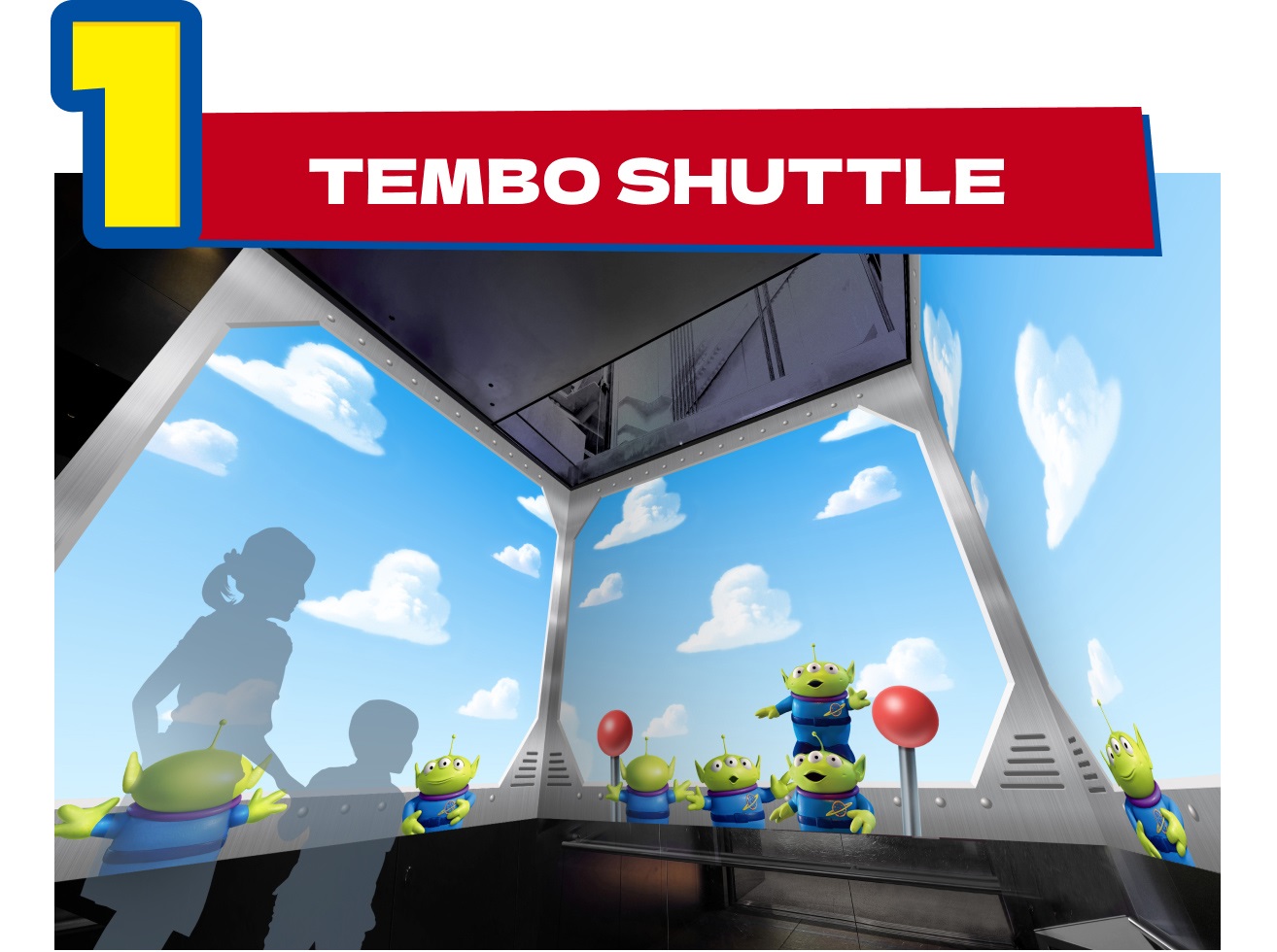 - The experience starts on the Tembo Shuttle and the ascension into the Galleria, where photo spots, art, and interactive activities can be found throughout.