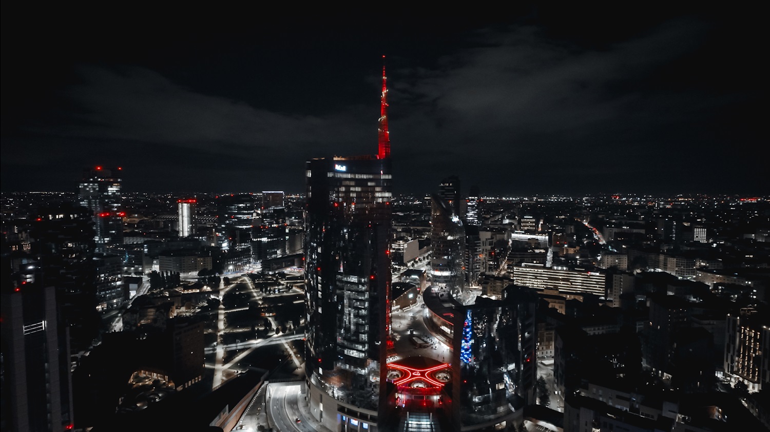 - The UniCredit Tower was lit up in red with an immersive light mapping show inspired by the TRON universe, featuring light effects and projections of exclusive content from the film that transformed the entire area into a hyper-technological experience.