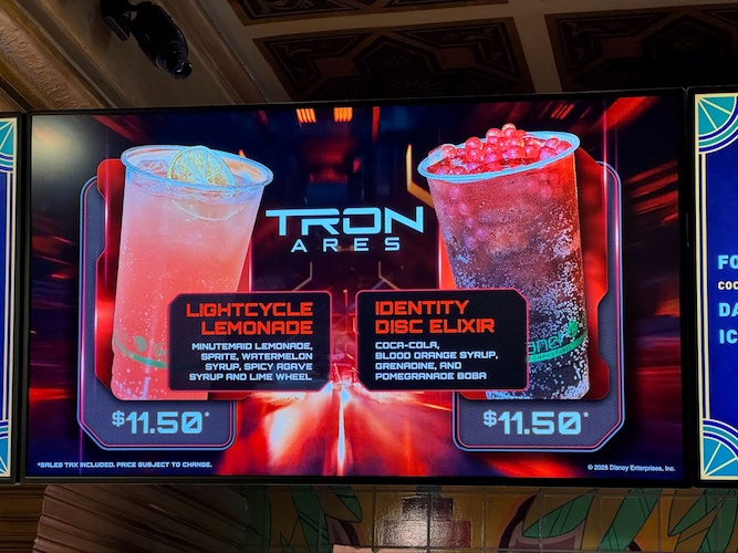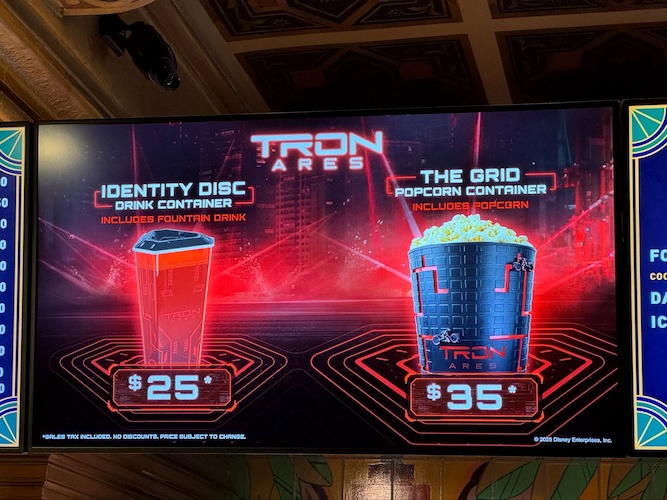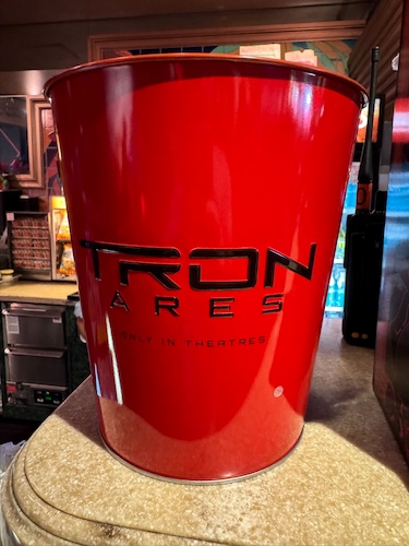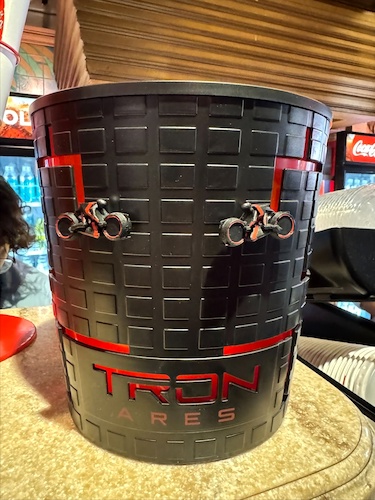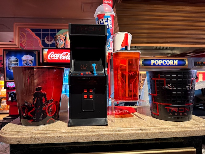 Inside the theater’s lobby, my first stop was at the concession stand, where attendees could pick up some very cool TRON: Ares specialty items like sippers and popcorn vessels.