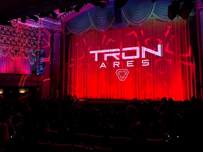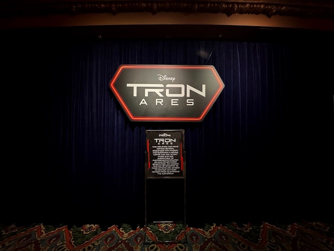 And inside the auditorium, between the second and third movie the TRON: Ares logo was projected on the theater’s curtain.