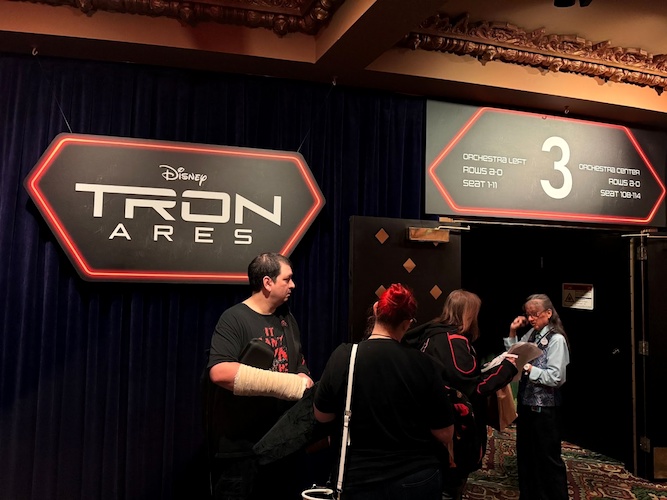 From 2:30 PM Wednesday afternoon through 9:30 PM that night, I was at El Capitan Theatre in Hollywood for a marathon of all three TRON movies, in celebration of the release of Disney’s latest sci-fi sequel, TRON: Ares. Below are my photos from the experience.
