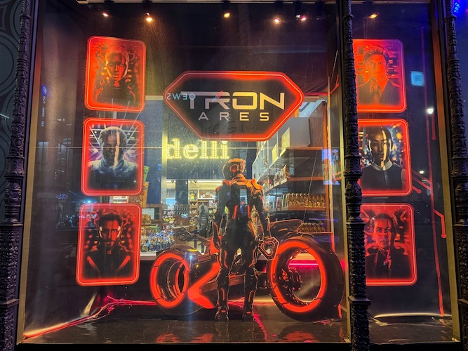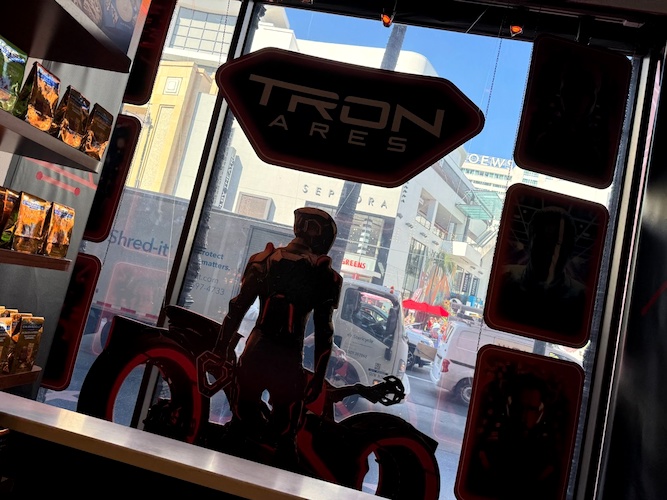 Of course I had to stop by the adjacent Disney Studio Store (located inside the Ghirardelli Soda Fountain & Chocolate Shop) to check out the TRON: Ares merchandise that was available for purchase. The store also has a neat TRON: Ares window display.