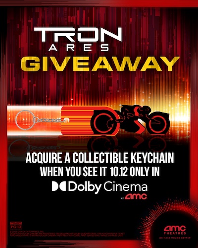 If you see the movie on October 12th, you will be able to get a collectible keychain when you see TRON: Ares in Dolby Cinema.