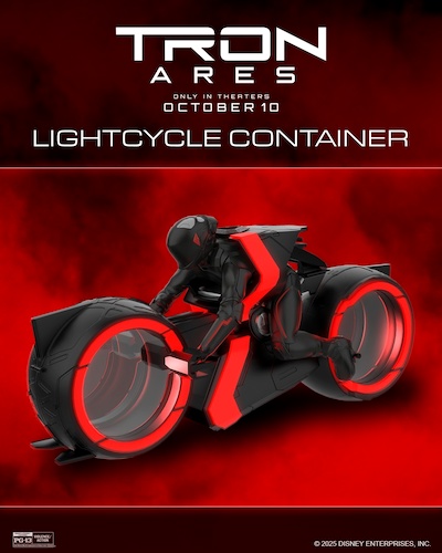 Marcus Theatres will also feature more TRON: Ares collectibles, including the Lightcycle Popcorn bucket. Their pictures reveal more of the size, also showing off that the popcorn bucket lights up. It also appears the the popcorn will be held in the wheels of the lightcycle, so there are two separate popcorn areas.
