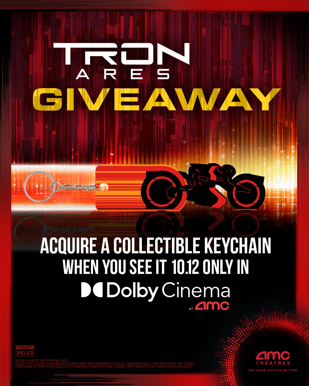 If you see the movie on October 12th, you will be able to get a collectible keychain when you see TRON: Ares in Dolby Cinema.