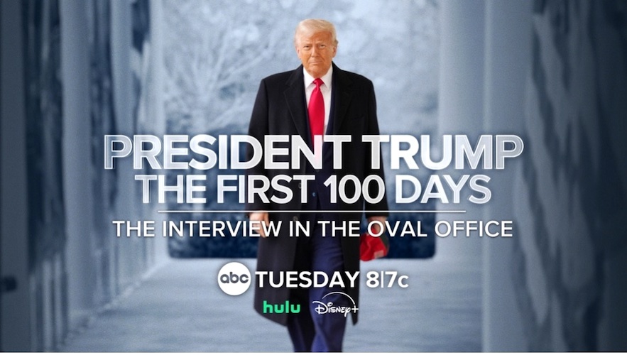 - President Trump - The First 100 Days: The Interview in the Oval Office will air Tuesday, April 29th at 8pm ET on ABC.
