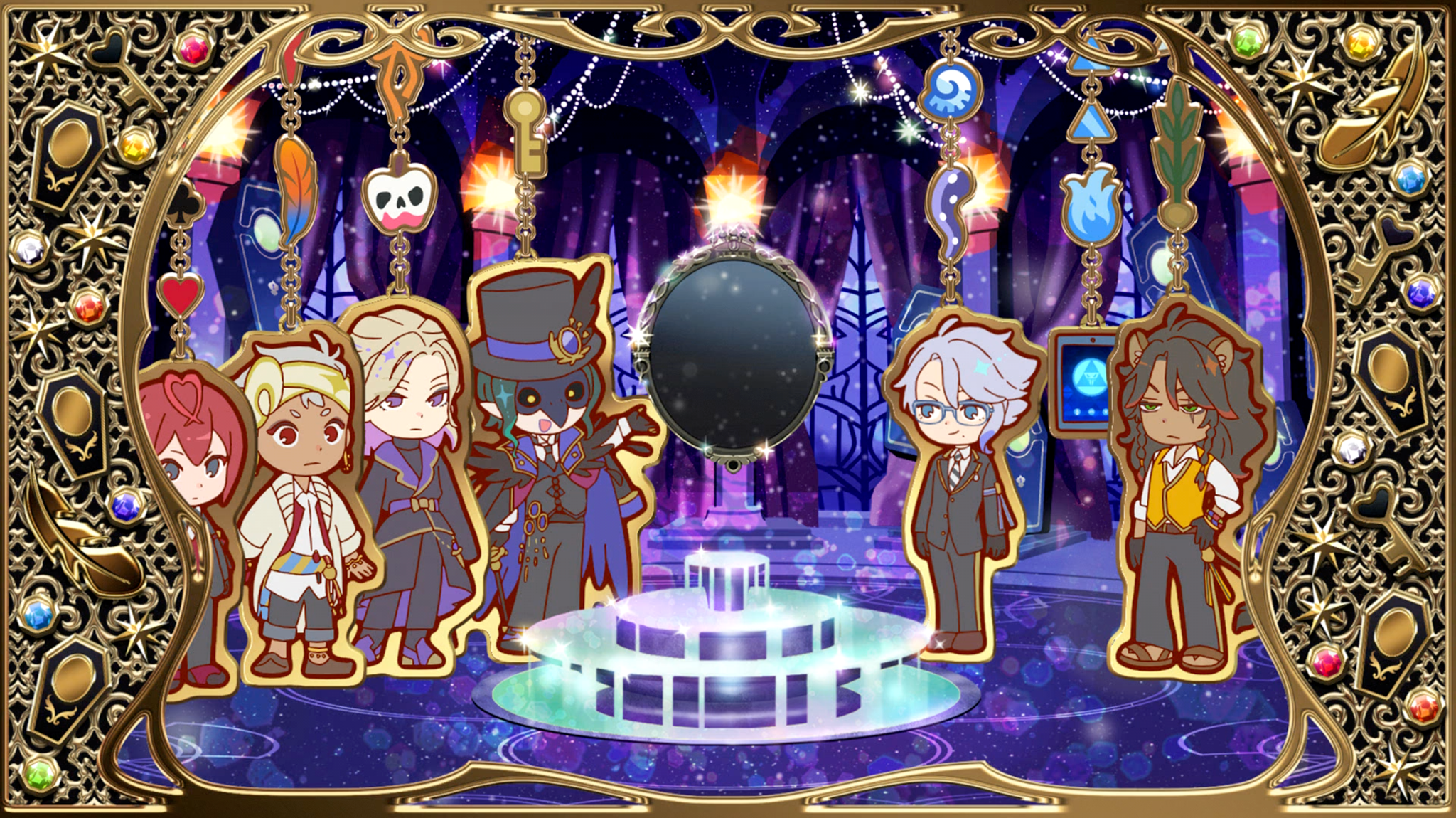 Keychain versions of the headmage and housewardens reenact efforts to rehearse the entrance ceremony that went awry in this episode. Dire Crowley and his most responsible housewarden, Riddle Rosehearts, waited for the other housewardens to trickle in. Kalim Al-Asim had extravagant ideas for the ceremony, including a banquet and a parade of animals. Azul Ashengrotto offered to help execute that vision, while Idia Shroud, via tablet proxy, mocked Azul, suggesting the entire ceremony be reduced to a livestream event. Vil Schoenheit couldn’t be bothered, getting in trouble for using the Dark Mirror to admire his own reflection. As the bell tolls to signal the beginning of rehearsal, Leona Kingscholar arrives, tired and in need of another nap.