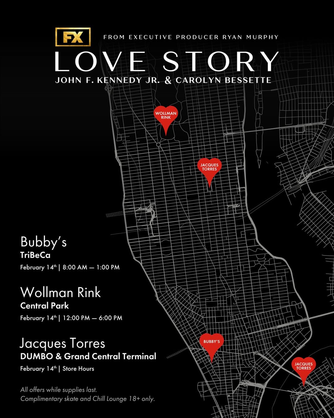 Fall in love with FX’s Love Story: John F. Kennedy Jr. & Carolyn Bessette with several pop-ups throughout New York City.
