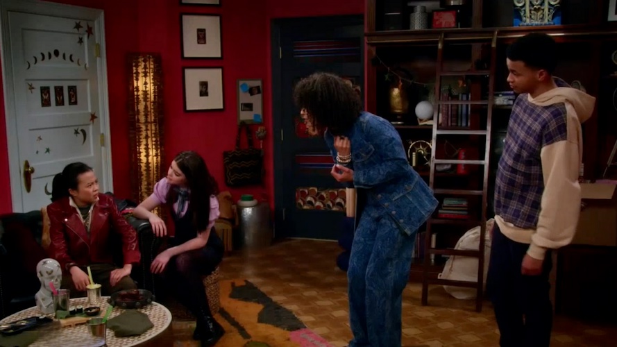 The garlic has made Vee loopy, who giggles over having two pointer fingers. Moriah returns to the living room just as Sophie emerges from her bedroom, wearing one of her leather jackets and carrying a prop spear. “Whose the weird theater kid now?" she jokes, but Moriah takes defense and almost attacks her. Elijah gets in the way, and she warns him that this is precisely why their mom is worried about him wasting time at music school. Vee comes to his rescue, hyping up Elijah’s talents and saying his family needs to help him preserve his happiness. Sophie starts to cough, and Moriah is surprised to see her pick up a silver boba tea cup and drink from it without issue.