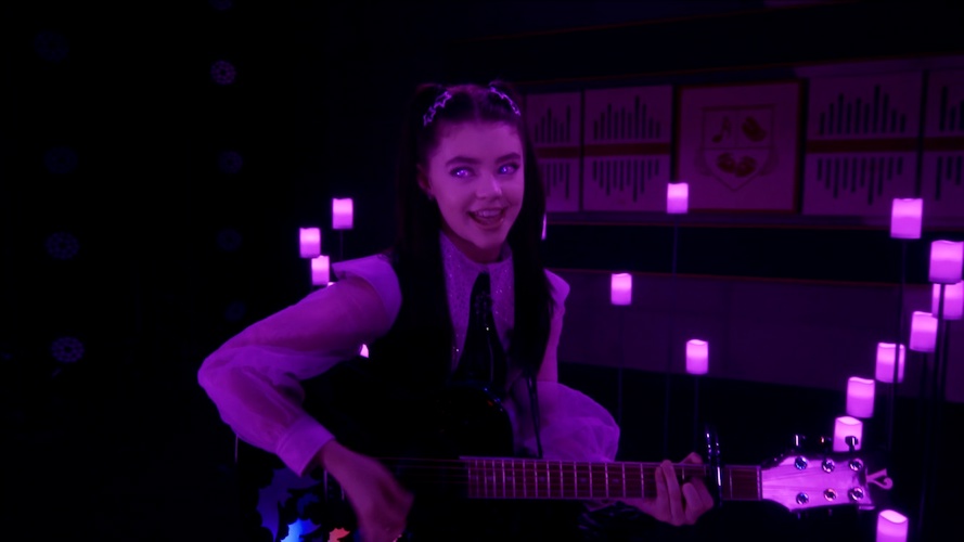 The day after the show, Britney draws attention in the cafetieria in concert merch, bragging about how incredible the show was. Dean Merriweather gathers the students with an announcement: Millie Eyelash saw the post and felt bad, so she’s agreed to perform a private show at Wilson Hall. One student will be chosen as her opening act. The catch: it has to be a solo performer, not a group. Vee, Sophie, and Elijah exchange nervous looks. For the first time, they’ll be competing against one another.