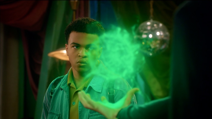In the attic later, Elijah tells Sophie he was about to confess his feelings to Vee and decides to text her. After Sophie leaves, he checks his reflection in the mirror — and Lucien steps out from behind it. Using hypnosis, Lucien commands Elijah to stay away from Vee. As a Van Helsing, Elijah is immune. “You’re a vampire!" Lucien grins. “And you’re a Van Helsing. I’m not just bad — I’m the evil your mother warned you about." Green energy swirls in Lucien’s hand.