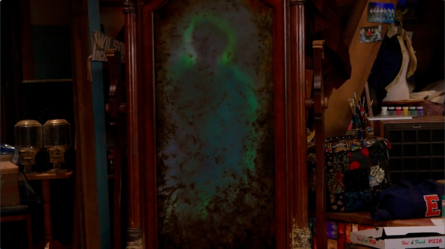 Later, in the attic, Vee hides Stoney’s cracked remains in a chest. Elijah assures her he would never harm her, though he remembers nothing about the dream world. As they part ways, a mirror behind them begins to shimmer faintly. The shadowy silhouette of an unseen figure appears on the other side, silently watching through the glass.