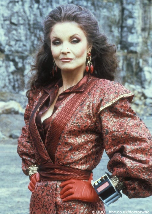 Those two appearances were the Rani’s only cannon appearances in the TV series proper, but Kate O’Mara did return for the 1993 30th anniversary special, “Dimensions in Time," which is not viewed as cannon, as various versions of the Doctor are trapped in Albert Square from the popular British soap opera, EastEnders. It’s a camp, ridiculous time that’s hardly great Doctor Who, but definitely worth a watch if you’re in for a laugh. Aside from that, the Rani has only appeared in audio dramas and novels ever since.